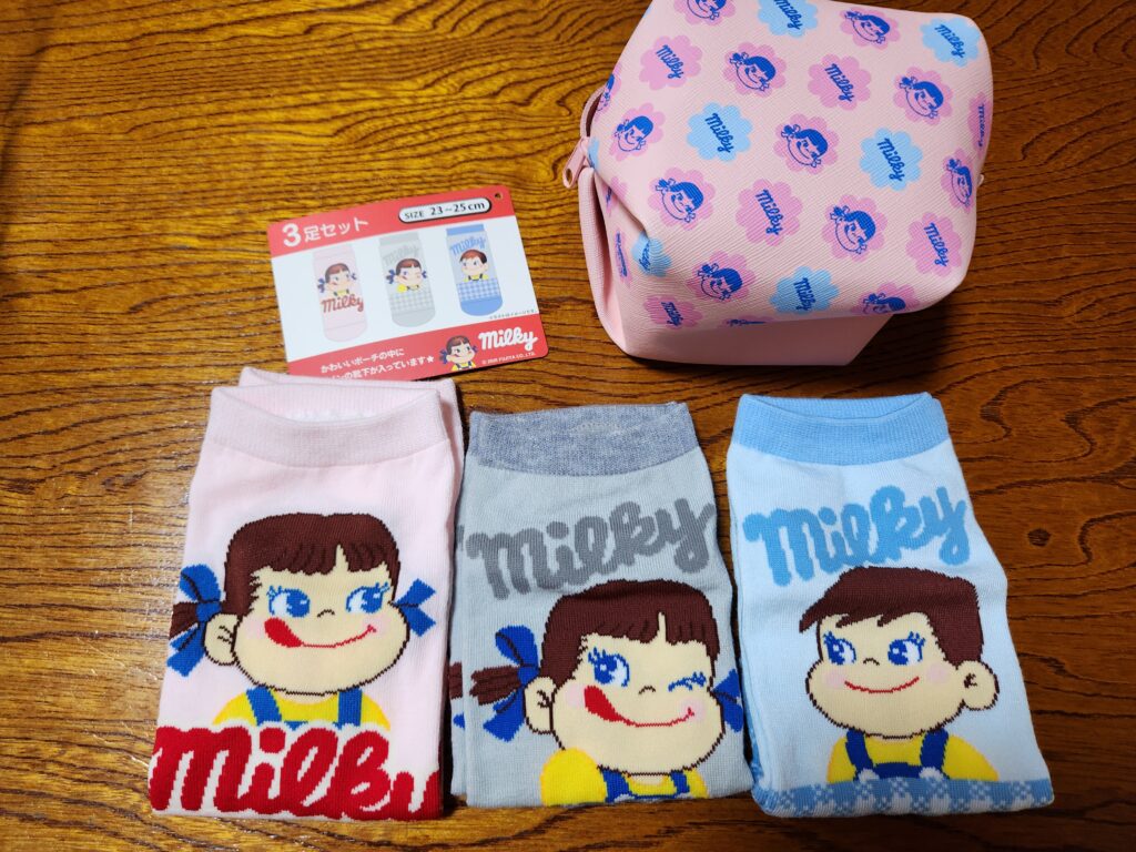 ポーチの中にはペコちゃんとポコちゃんの靴下が入っていました(*^^*)