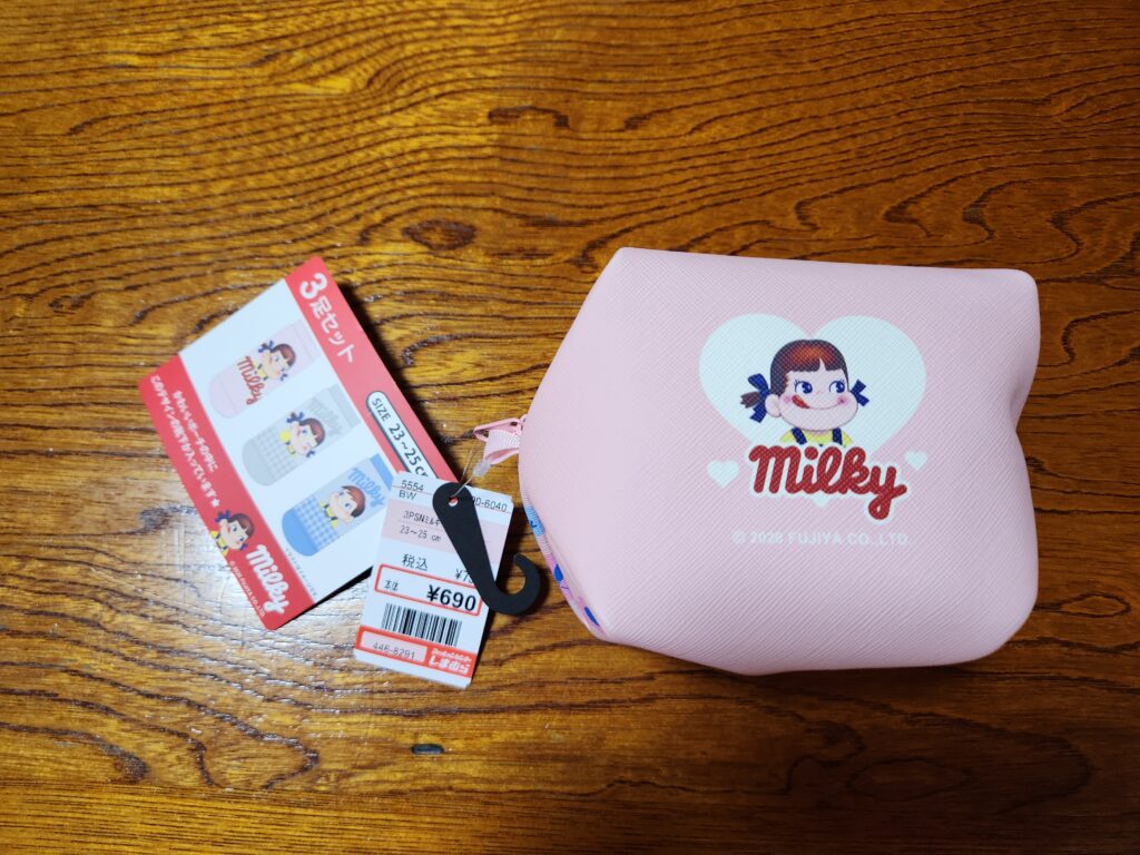 母の洋服を買いに行ったのですが、入り口を入ったらペコちゃんのポーチが、可愛かったのでとりあえずカゴに入れました。